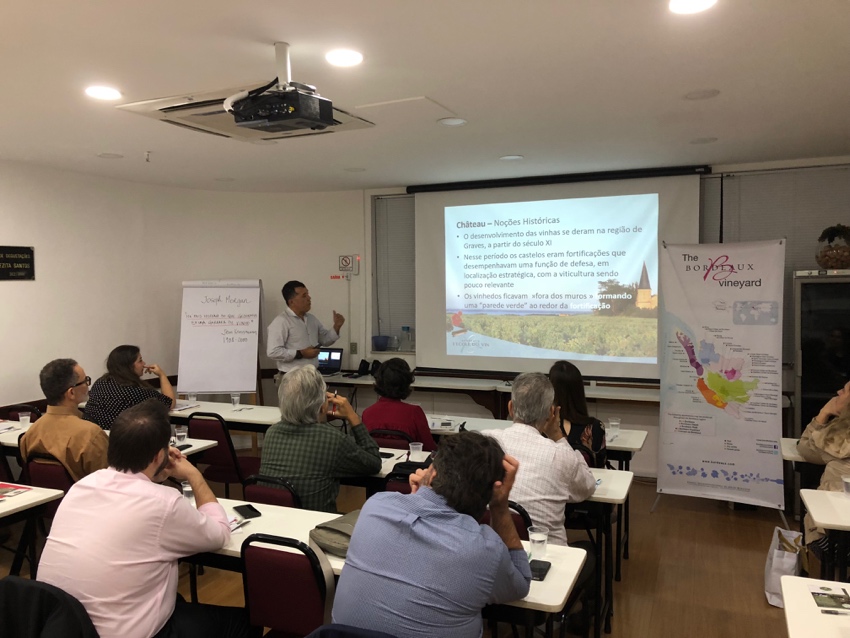 Para ilustrar este perfil de vinho, foram apresentadas seis amostras de diferentes regiões, das quais expus características de solos, microclima, castas e denominações de origem. Os vinhos escolhidos representaram uma paleta diversa das diferentes regiões de Bordeaux. Fiz uma pesquisa minuciosa buscando vinícolas singulares, de produção pequena e ótima qualidade.